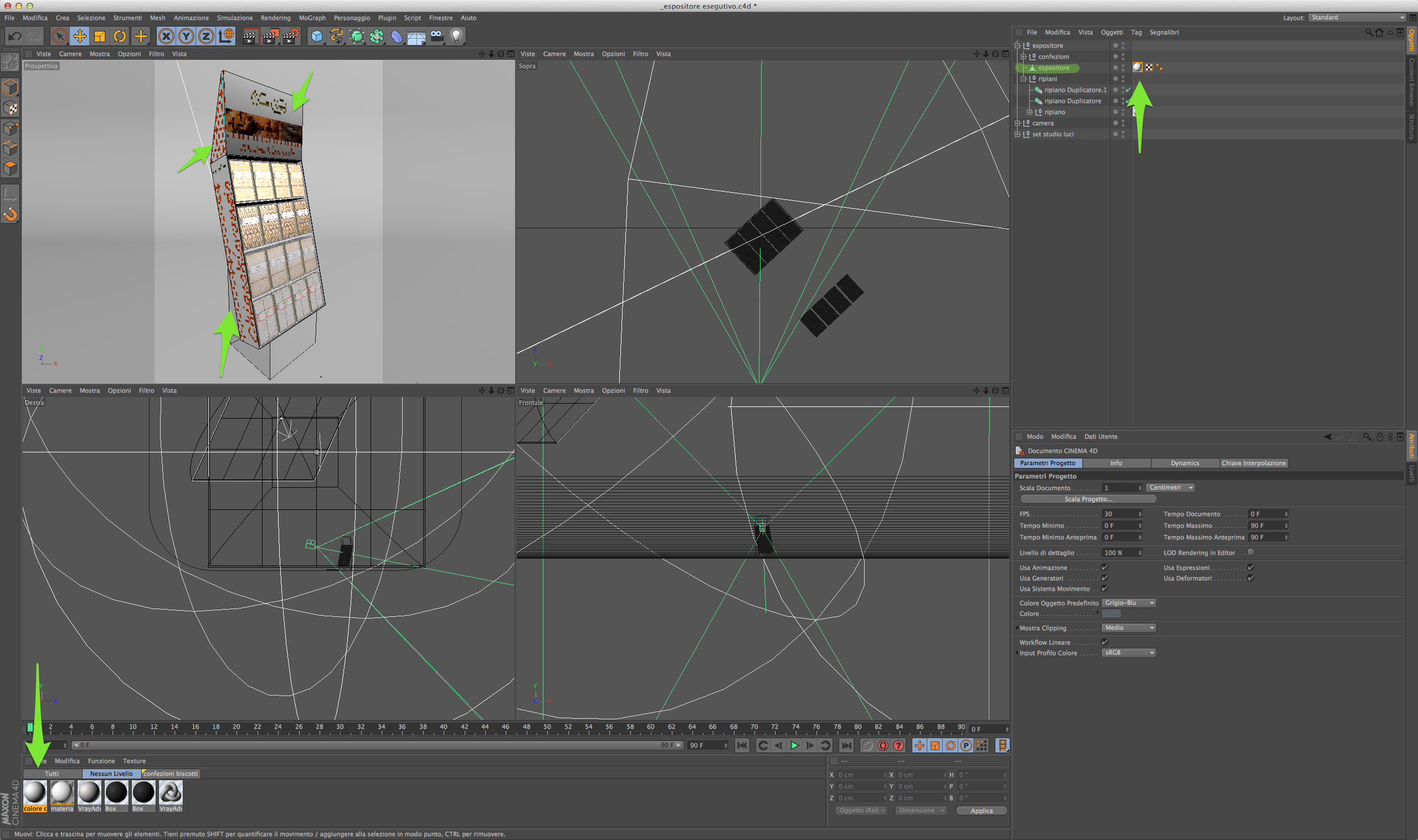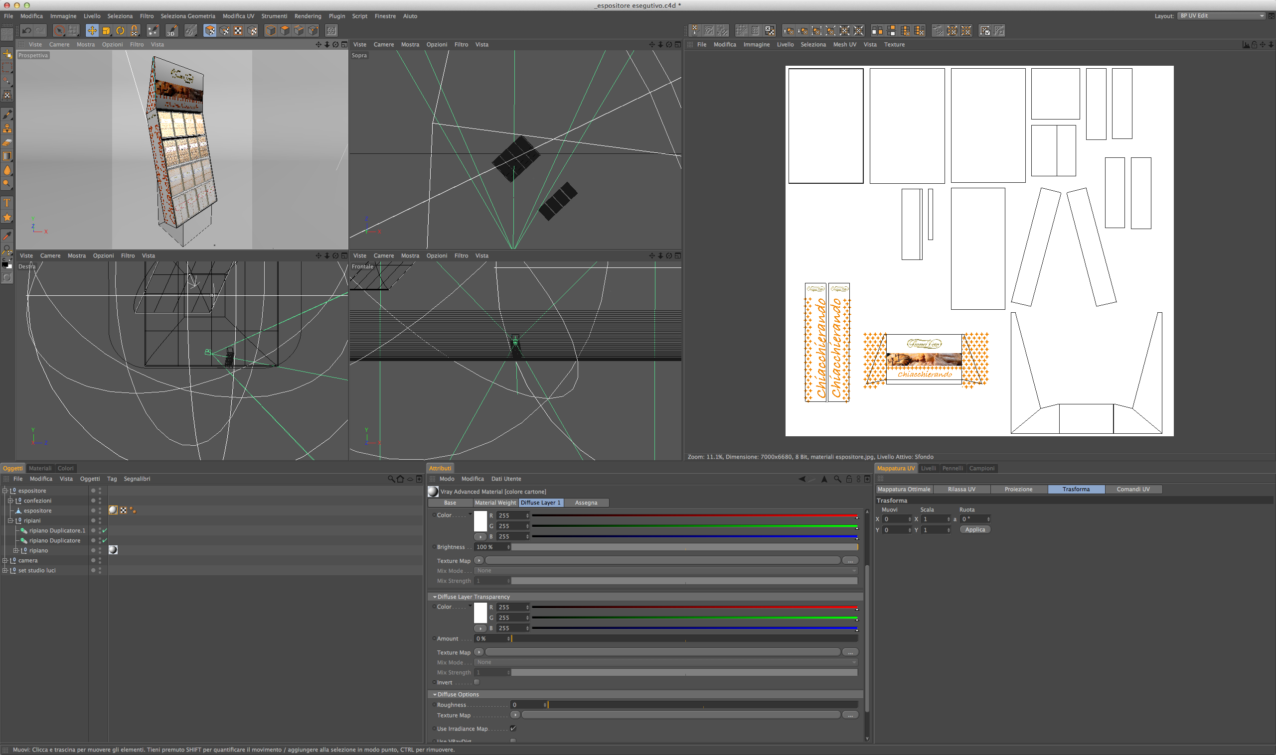 in pratica ho creato un espositore e con body paint ho creato la texture della struttura dell'espositore