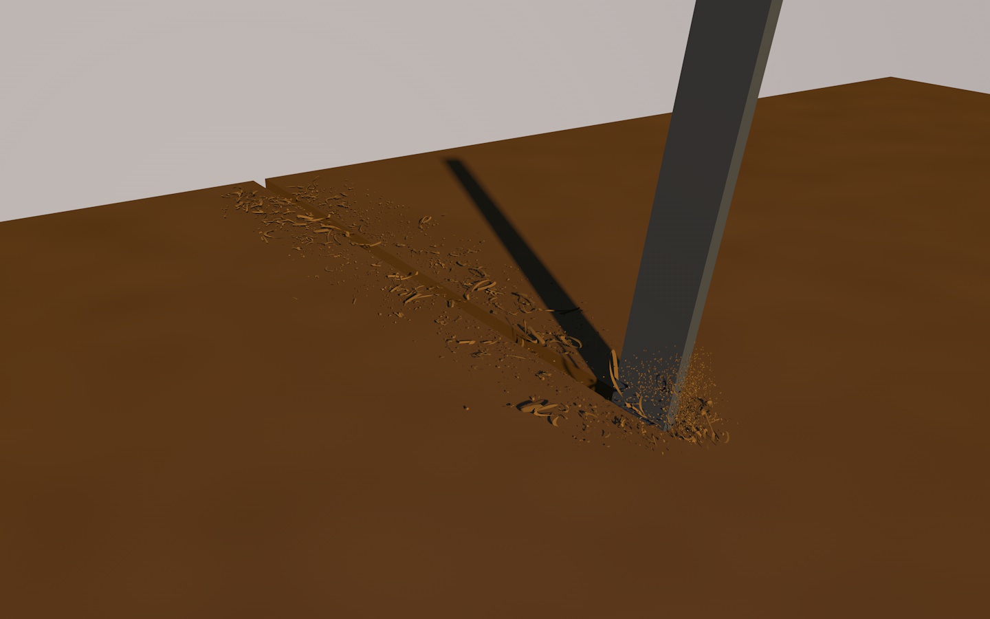 In effetti, la stesura dei trucioli sulla superficie di taglio, potrebbe essere risolta anche con una mappa di selezione in un oggetto clona impostando il modo su "superficie", si otterrebbe facilmente il risultato voluto senza troppo sforzo in termini di calcolo...