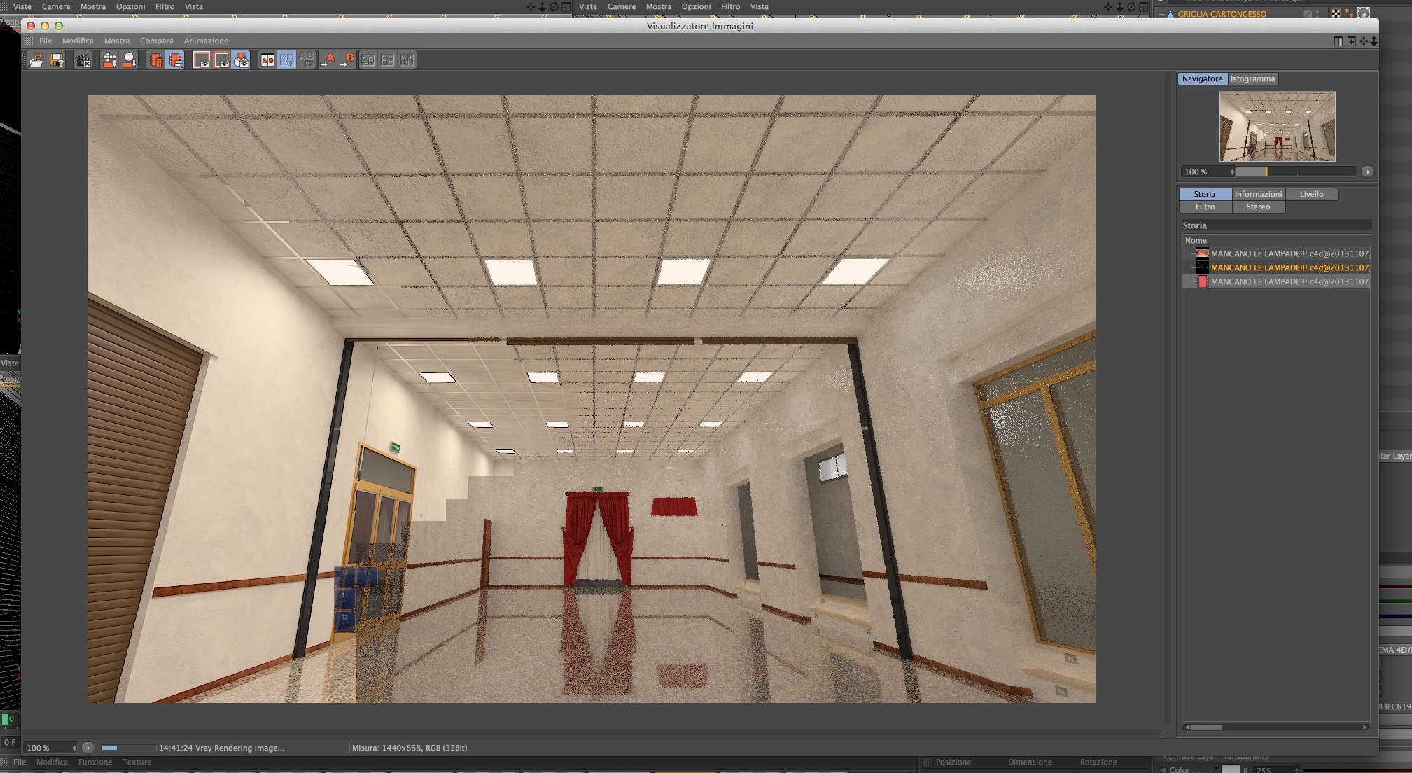 adesso per nessun motivo al mondo vorrei interrompere il rendering, mi serve per stasera... comunque avevo provato ad incollare in una nuova scena e non era cambiato nulla... era migliorato giusto di poco... Per quanto riguarda il threshold quanto mi consigli di mettere? se ne veniamo fuori posso anche stopparlo a mio rischio e pericolo logicamentevisualtricks ha scritto:ciao, bhe avrai cambiato magari qualche impostazione dell'antialiasing ? Così ad occhio, di robe che incidono sui tempi vedo il threshold molto basso (anche se le suddivisioni sono solo 8) e il filtro attivato. Se non sei sicuro di quello che hai cambiato, forse ti conviene creare una nuova impostazione da zero. In aggiunta, magari hai messo qualcosa nei materiali che può rallentare ? Chessò un bump procedurale, del displacement ?