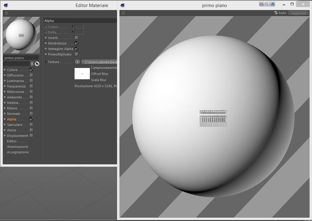 - rimetti lo stesso file nel canale ALPHA per far si che ora tu abbia il materiale bucato.