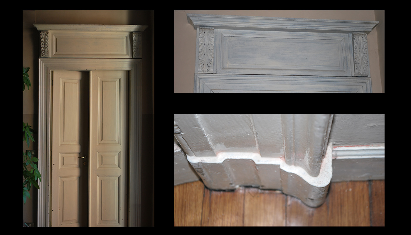 Come vedete sono porte abbastanza lavorate in legno massello. Alcune hanno due volute sopra la chiambrana.