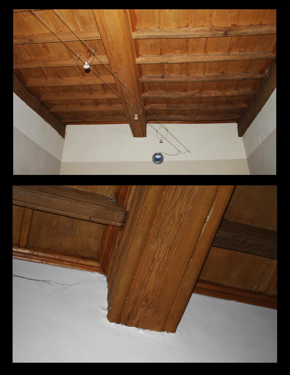 Il soffitto è di legno fatto a cassettoni, un'orditura di travi principali e travi secondarie. Anche per questo mi sono avvalso di Mograph, sia per la possibilità di randomizzare le texture, sia per poter gestire comodamente il numero delle travi e aumentarle e diminuirle comodamente.