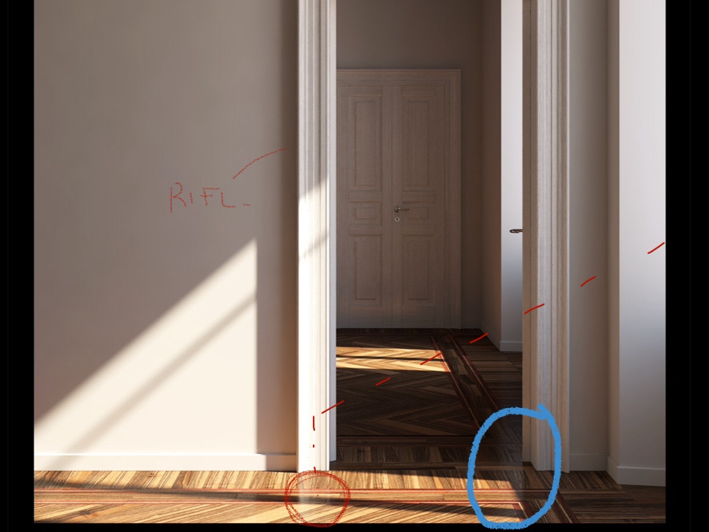 Per quanto riguarda il riflesso ho capito quale intendi, il riflesso sul pavimento dello stipite della porta, che però si nota di più nella zona d'ombra. Ho già chiacchierato con un mio amico in merito a quel riflesso, mi interesserebbe infatti avere anche la tua opinione, perchè lui, come te, me lo indicava come riflesso non reale, mentre io invece lo reputo abbastanza reale, poichè essendo quella parte dello stipite fortemente illuminata dalla luce è normale che il pavimento rifletta quella porzione di chiambrana no? Almeno questo è quello di cui ero convinto fino ad ieri, mentre da oggi stanno iniziando a venirmi i primi dubbi e perplessità! Dimmi la tua per favore, così da aiutarmi a togliermi dal casino mentale dei riflessi