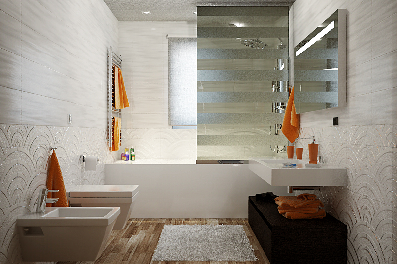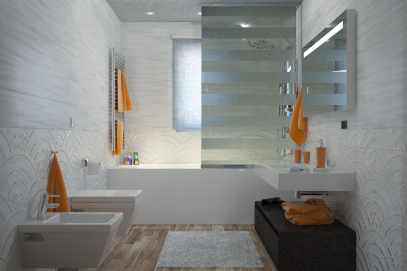 ora però, trattandosi del mio casi di un bagno, presente nel forum di vray, vorrei dare la tonalità di luce calda data dai faretti e dalla luce a soffitto.