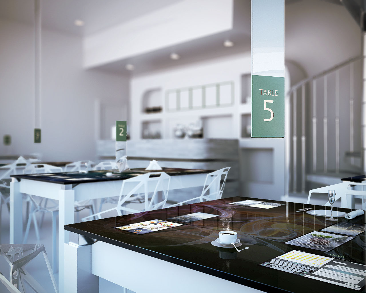 Quello che mi è stato chiesto è stato questo: rappresentare esterno ed interno di un bar dando l'idea di persone che comunicassero da un tavolo all'altro utilizzando un tavolo touch-screen.