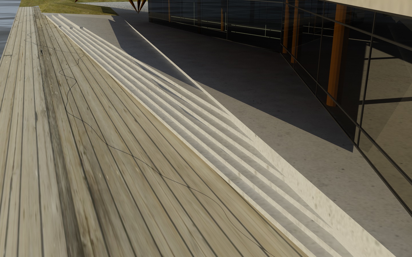 Qui sotto c'è un'immagine che riassume bene i problemi a cui non so far fronte. Innanzitutto la texture del pontile in legno.