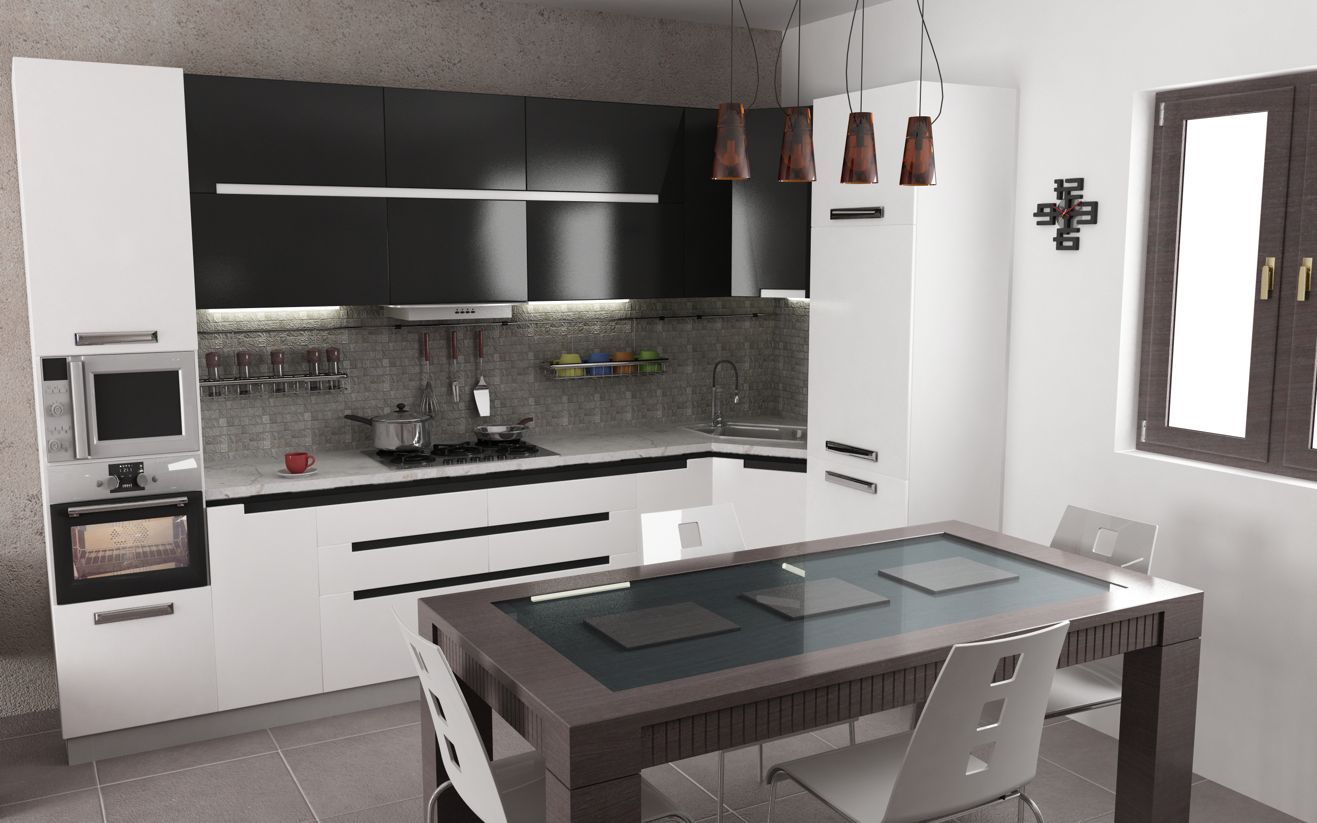 Il tempo di render è tra le 2 ore, 2 ore e 30 min ho provato ad alzare un po i valori per eliminare le macchie scure sui muri e ci sono riuscito ma il tempo è aumentato a 12 ore a immagine.