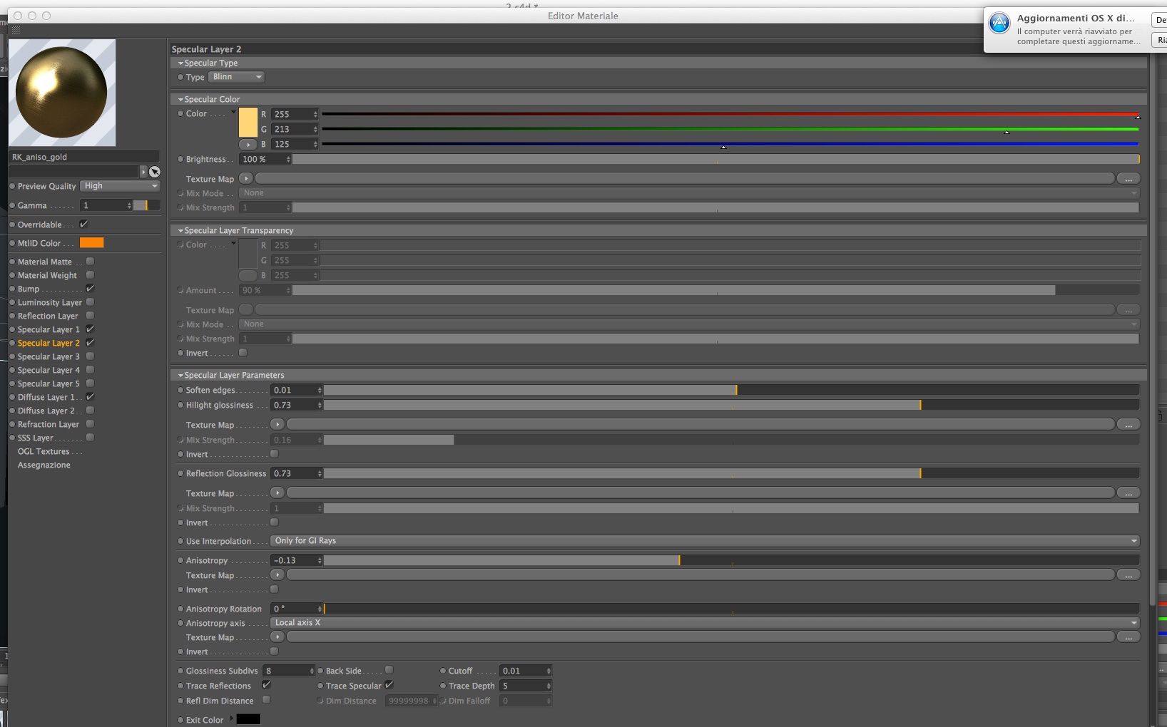 Ciao a tutti, volevo chiedere un informazione in merito alla lucidita/riflessione metalli, in particolare la mia esigenza è di realizzare dell'ottone lucido. Ho lavorato con semplici luci area. Non riesco a capire perche non mi dia questa reazione.