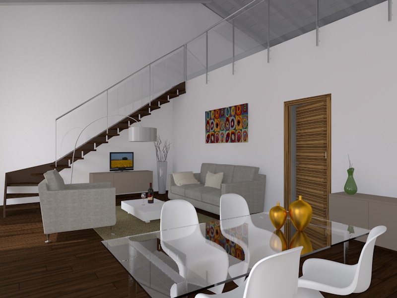concordo , al legno darei un po di riflessione con un fresnel ,rivedrei anche i parametri delle ombre non mi sembra possibile che la scala non produca ombra sulla parete, il muro di fondo sembra un tutt'uno con la parete di dx, stessa cosa per vaso e divano.