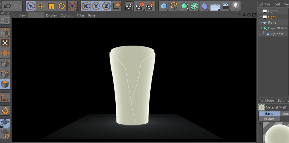 Sono riuscita ad ottenere la forma del vaso con la modellazione poligonale (per capire il funzionamento ho seguito il famoso tutorial della tazzina) ma rimango bloccata nel taglio del rilievo, ogni tentativo mi crea poi con l'hypernurbs un sacco di errori in quanto tagliando lungo la spline del rilievo mi crea dei triangoli e non più poligoni...