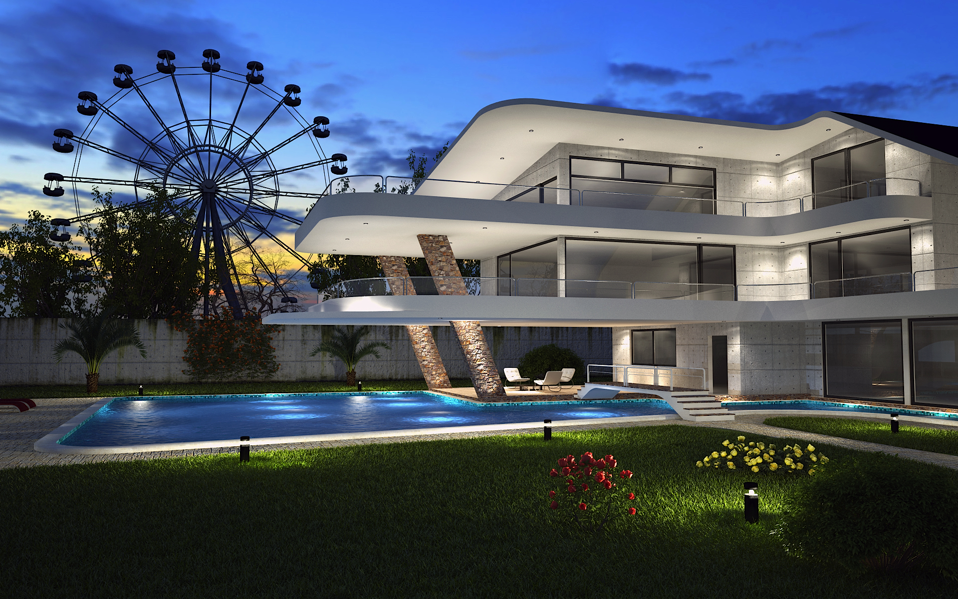 Ciao ragazzi, ho ripreso un mio vecchio progetto, per l architettura mi sono basato su un immagine di una casa trovata sul web, mentre per quanto riguarda l illuminazione ho preso spunto dalla bellissima immagine di Vitt23 presente nella galleria a pagina 3, naturalmente neanche a paragone con l immagine di Vitt23..magari essere a quei livelli! X l erba provvisoriamente ho messo una tex, in previsione poi di crearla con il fur o fast and fur, che dite? Creo un tassello e poi Duplicatore con istanza di render attivato? L illuminazione è data dall immagine sullo sfondo caricata nel back env e dalle luci ies tante quanti sono i faretti, cioè 48.