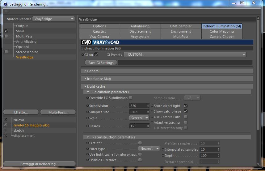Il limite di cui parlavo è il "dynamic memory limit" nella scheda Vray system; l'ho messo a 6500 MB perché vray andava in crash già durante la compilazione della LC, non appena l'uso della RAM aveva raggiunto il 100%.