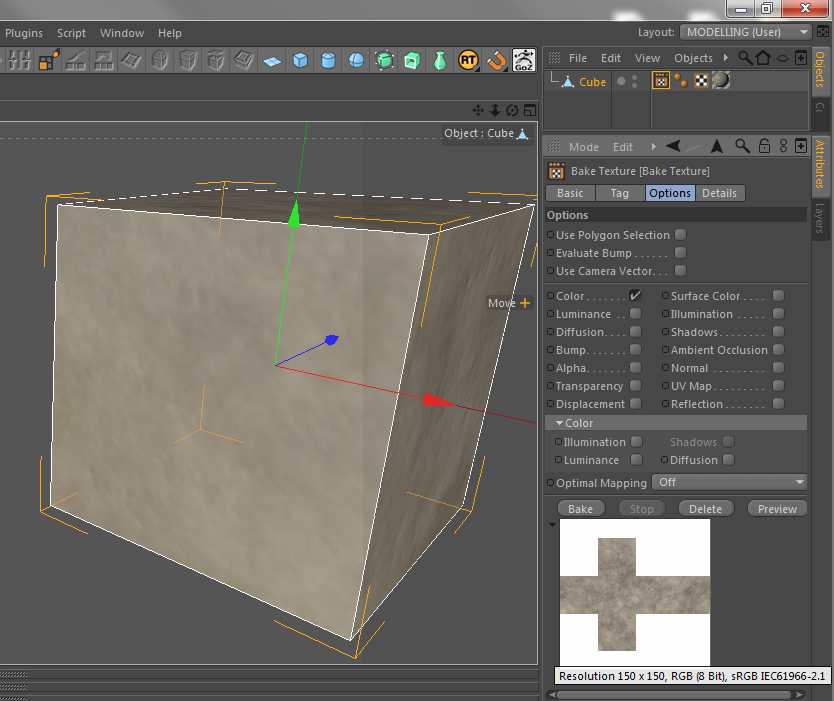 Per esportare il canale colore (procedurale o meno), devi prima stendere le UV dell'oggetto, poi aggiungere il tag BAKE-TEXTURE all'oggetto settando tutti i dettagli del caso.