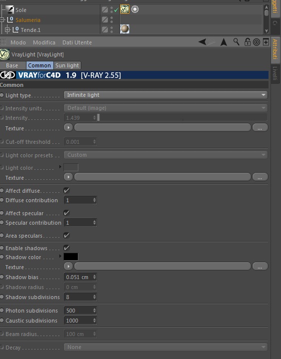 se provi ad alzare il livello "shadows subdivision" della luce infinita?