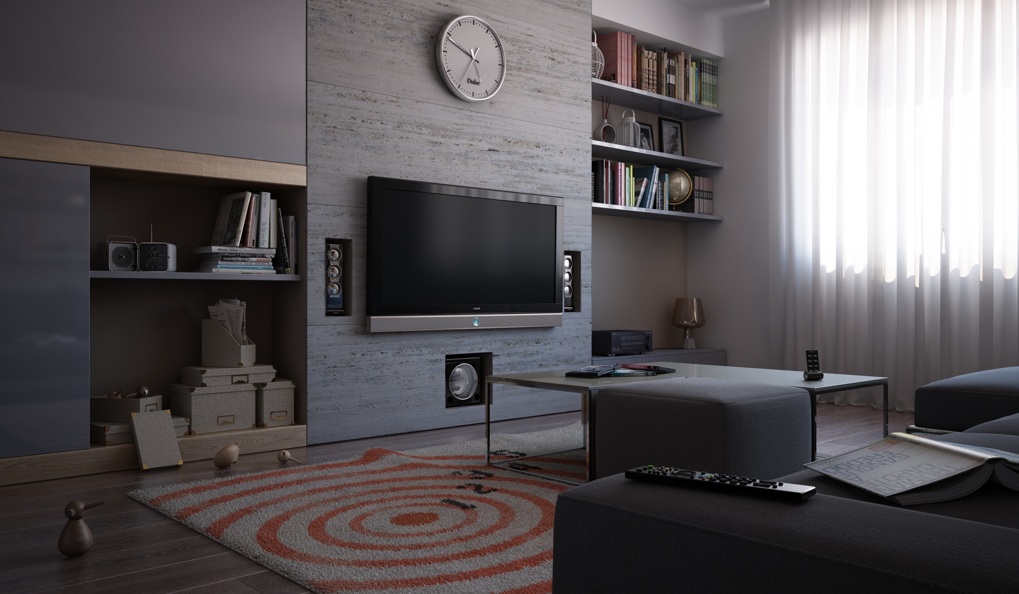 Se mi posso permettere ti posto un reder che feci tempo fà di un salotto simile con parete TV, non so, magari riesco a farmi capire meglio con quello che intendevo dire sulle riflessioni e sull'idea di movimento..il render non ha post-produzione e forse dovrebbe essere schiarito e ha millemila altri difetti, ma mi aiuta a farmi capire..
