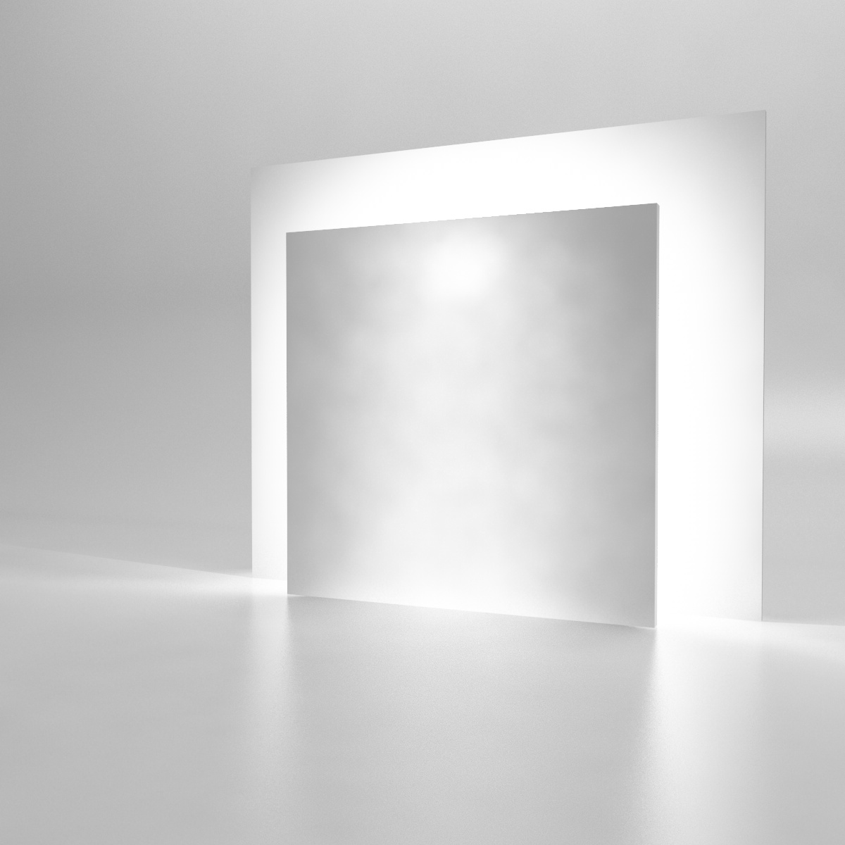 In questo esempio di prova ci sono due spessori diversi che genereranno appunto la traslucentezza dell'oggetto, ho messo una fila di luci area rettabgolari con potenza 3 W (come quelle che vorrei usare) a simulare una strisciata di LED che puntano in direzione della superficie riflettente retrostante per diffondere la luce, all'oggetto invece ho applicato un Vray2SidedMaterial provando pensoi tutte le percentuali di trapsarenza