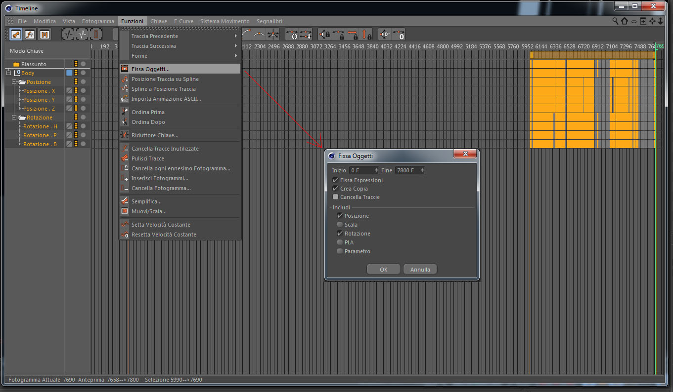 si puó usare per convertire in oggetti animati con keyframe tutto ció che non lo é, come ad esempio quando calcoli le dynamics in cache per qualche oggetto. il tutto viene convertito in keyframe che lí sono e lí restano.