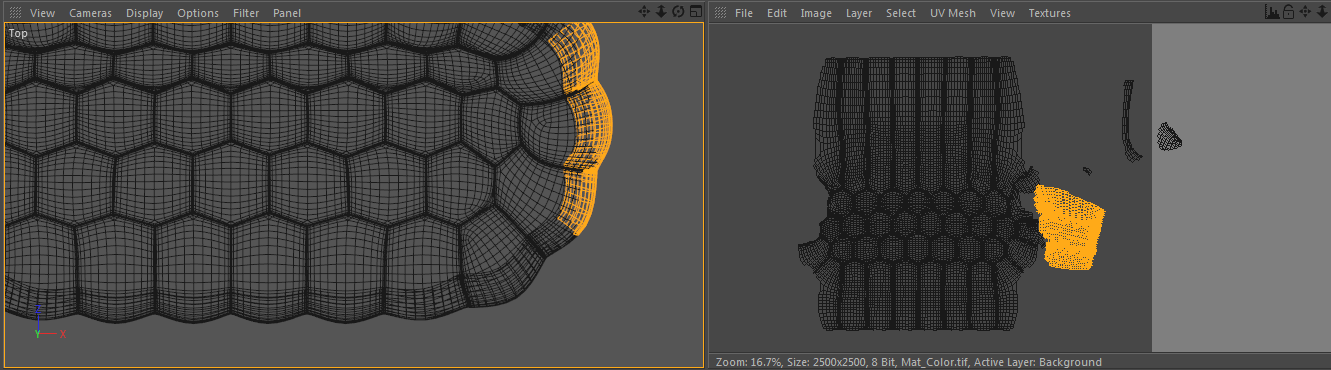 Per avere un effetto ottimale sul render ho deciso di mappare la geometria, stendere la uvw e quindi realizzare con lo shader tiles esagonale il tessuto a nido d'ape.
