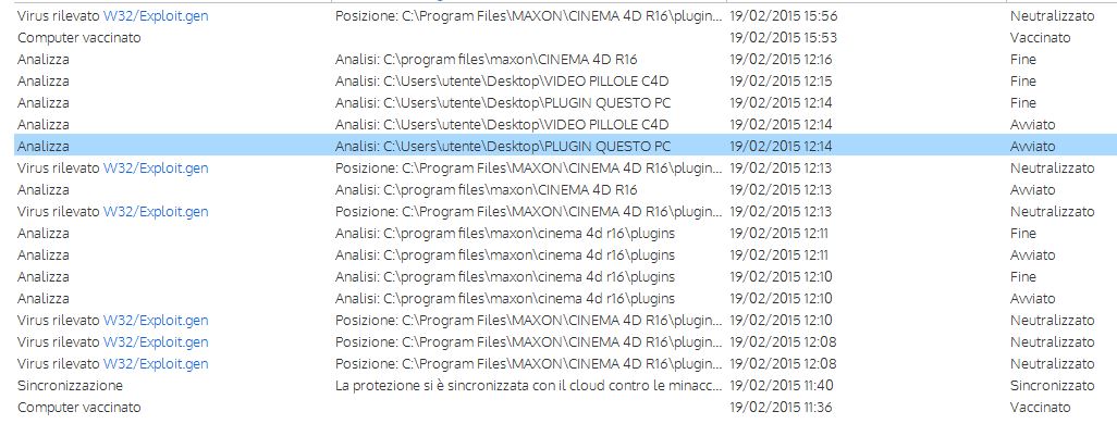 Avviando il c4d mi compaiono diverse segnalazioni dal programma antivirus, riguardanti i plugin.