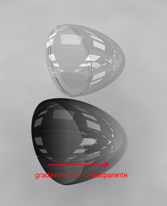 Vorrei applicare a queste calotte un materiale vetro con gradiente da nero a trasparente.