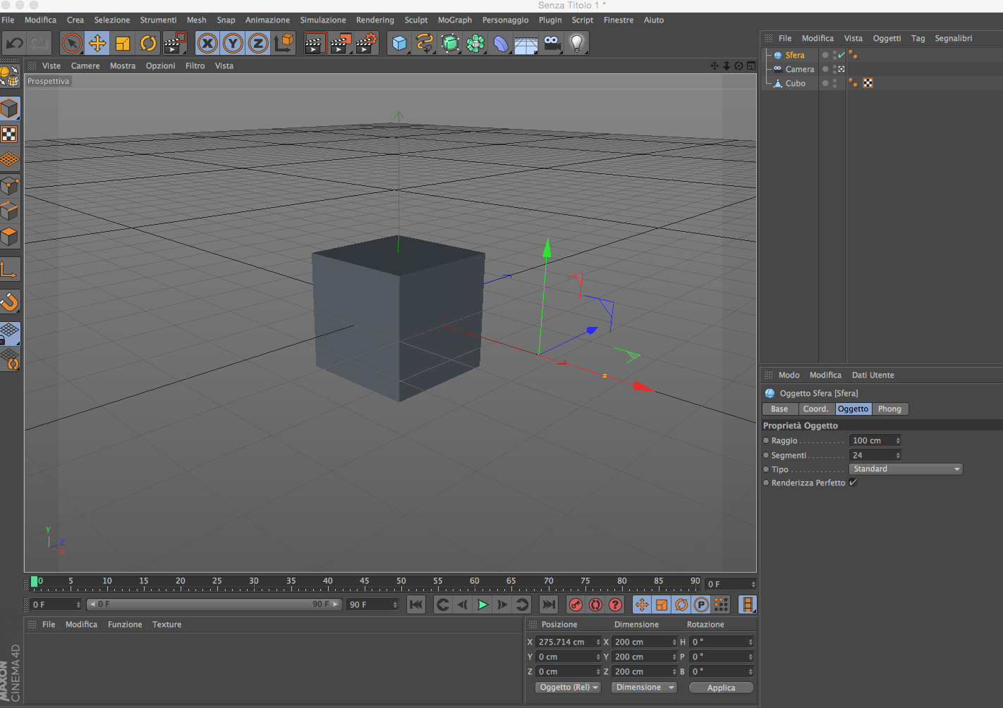 se creo una sfera o un cubo, vedo gli assi dell'oggetto ma non riesco a visualizzarlo nelle finestre, se lancio un render vedo l'esistenza dello stesso.