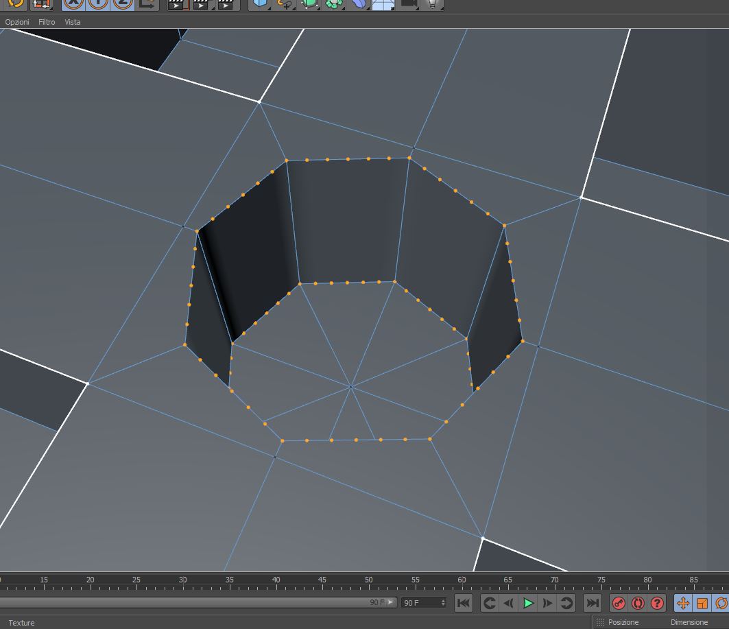 elimina i punti tra un vertice e l'altro che non servono a nulla e fanno solo casino, seleziona tutti i punti ai vertici dell'ottagono e scala su x e z