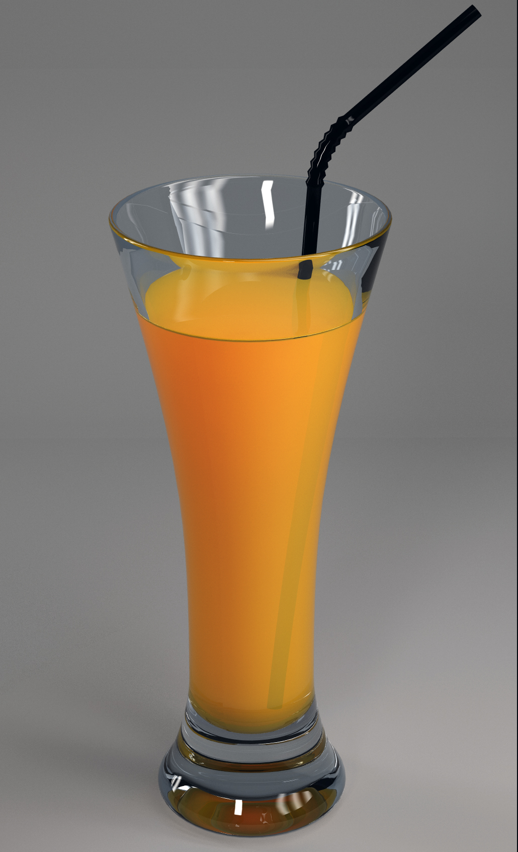 L'unica cosa che manca e' l'effetto nebbia interno, cioe' la cannuccia si dovrebbe vedere sfocata non netta, secondo me il risultato ora e' eccellente, non voglio sapere come l'hai fatto, muoio ignorante, ma forse se sei in modalita' vetro nei layer, usa anche il glossiness se hai il layer attivo...il refraction...