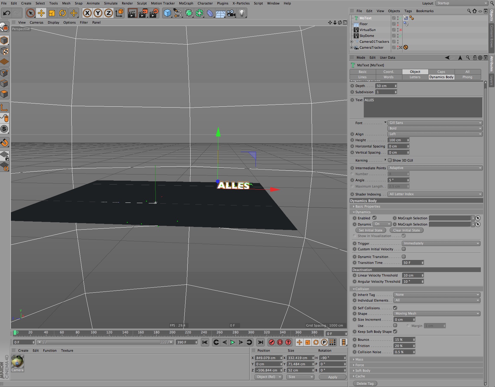 Vorrei fa cadere un (testo) Motext su un piano (floor), a partire però dal 170 frame e non dall'inizio. (Ho un filmato caricato con il motion tracking).