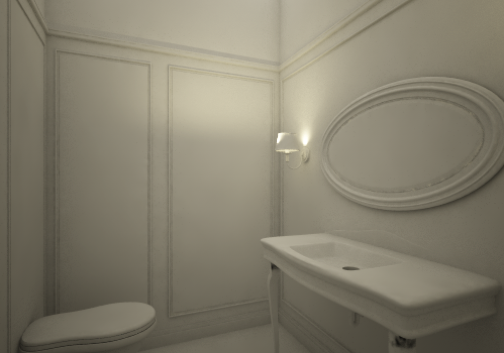 Mi trovo a renderizzare un bagno cieco, privo di qualsiasi fonte di illuminazione naturale.
