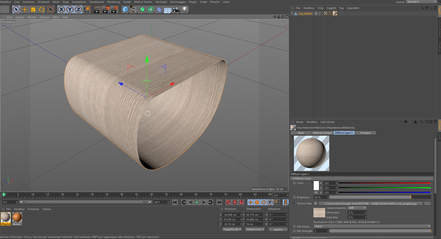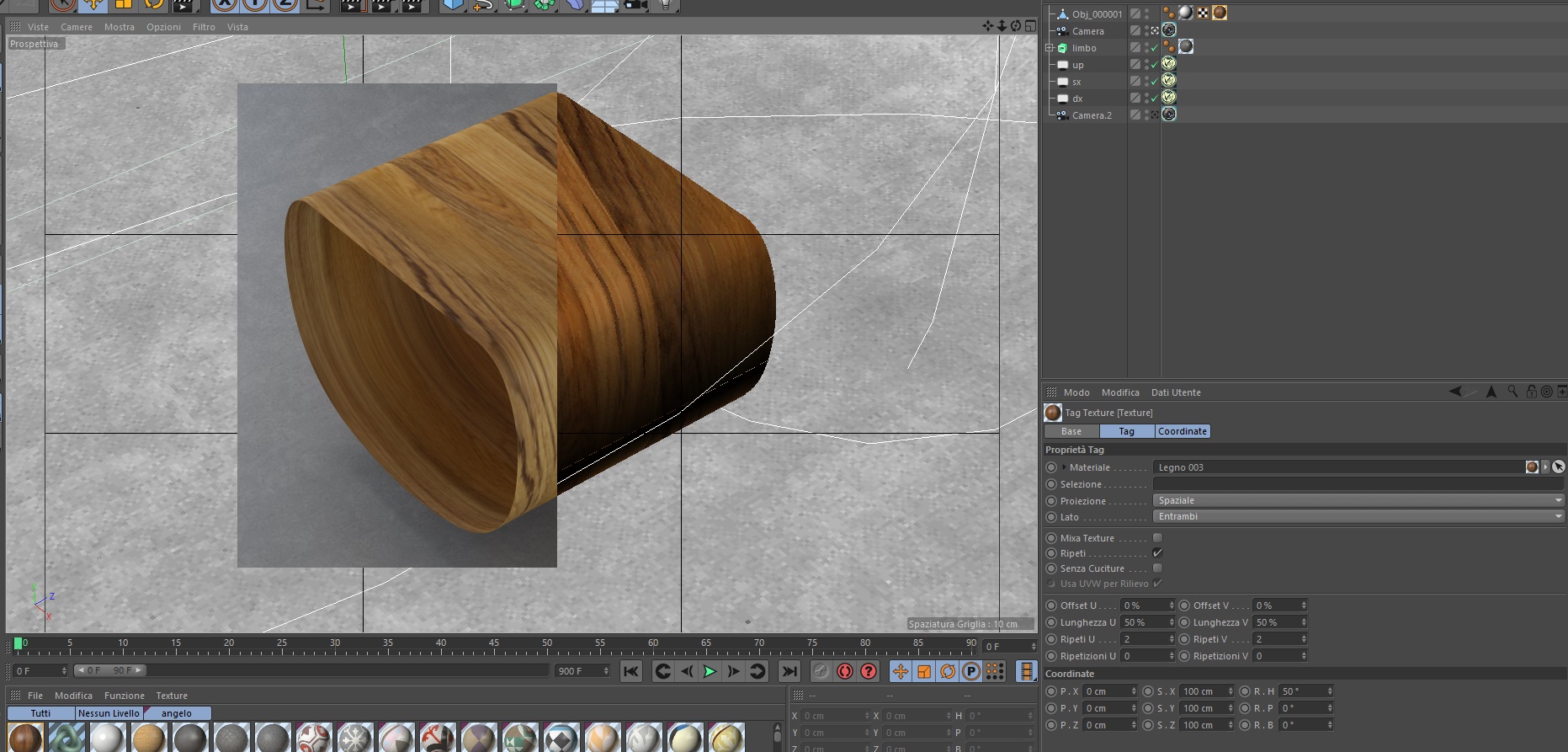 penso di aver risolto... ho provato a mettere come tag texture : spaziale e modificando le cordinate di rotazione viene bene senza nessuna interruzione, l' unica cosa che non capisco è che: sull' anteprima del materiale portata ad una certa gradazione me la fa vedere in una maniera, mentre nel render me la riporta in altra maniera, mha, l' importante è che ho risolto anche se forse in modo da non professionale.