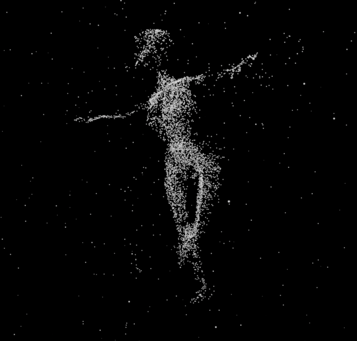 Detto questo, ti posso assicurare che l'effetto della foto in allegato, è molto facile da realizzare ( a patto di avere nozioni di base di TP ). Il fatto è che in realtà, non ho capito quale sia il tuo problema, cioè, se le particelle devono rimanere attaccate al corpo (?) seguendone i movimenti ( e non è il caso del video, in cui ogni particella nasce e muore in un fotogramma e viene sostituita) ; se devono nascere tutte in un solo colpo o progressivamente... ect ect!!