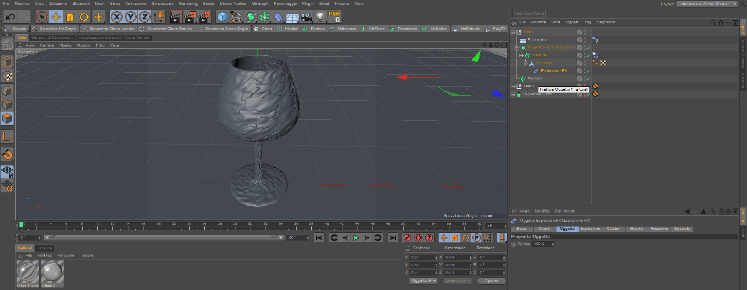 In pratica cercando di far interagire solo una parte del bicchiere mi viene fuori che tutta la superficie del bicchiere viene deformata già in partenza come se ci fosse un effetto displacement che non c'è, inoltre il bicchiere vola anche se non appena l'esplosione parte ma credo che sia un discorso di parametri di forza/velocità di esplosione gestiti male.