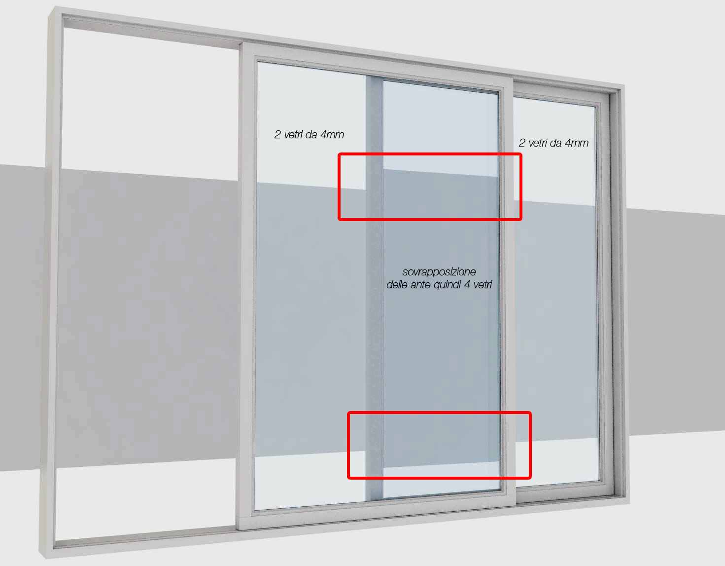 ho un problema con questo infisso, ho creato un anta con doppio vetro da 4mm e quando si sovrappone l'anta mi crea uno strano effetto come se si ingrandisse l'immagine. Ho creato il doppio vetro come se fosse reale e in effetti i doppi riflessi sono belli da vedere :)