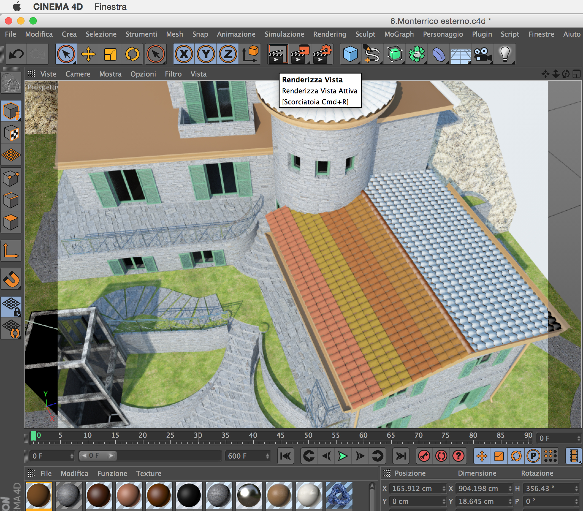 ora mi chiedo (diciamo che ho provato ma non ci sono riuscito) se è possibile stendere sulla copertura diversi colori (o textures) per diversificare l'effetto dei coppi e non avere una sola tonalità di colore (o una texture). ho visto in rete che c'era il cpmando random di mogrpah che permetteva piu o meno di fare questo (vi prego fermatemi qualora io stia iniziando a dire cavolate... :roll: :roll: ) ma in cinema 15 non lo ritrovo più :shock: :shock: :shock: . come posso risolevere il mio problema? :-(( :-((