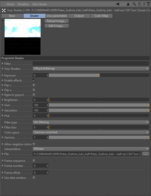 Settaggi VRAY.