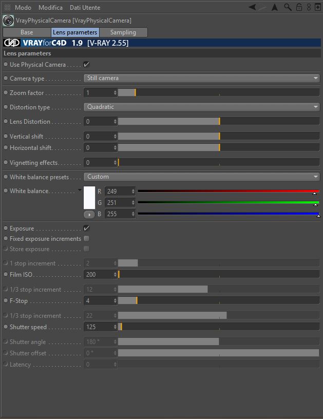 Settaggi VRAY.