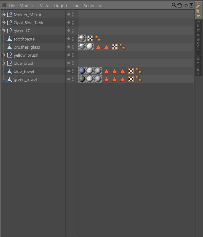 Maruzzella ti posto qualche immagine dell' object_browser e di uno screen-shot che ho chiesto al moderatore di inviarmi riguardante il problema, ma che non mi ha chiarito la situazione. Magari riesci a capirci qualcosa di più! Per quanto riguarda i poligoni degenerati li avevo sistemati prima d'inviare il file ed ora le mesh sono pulite!