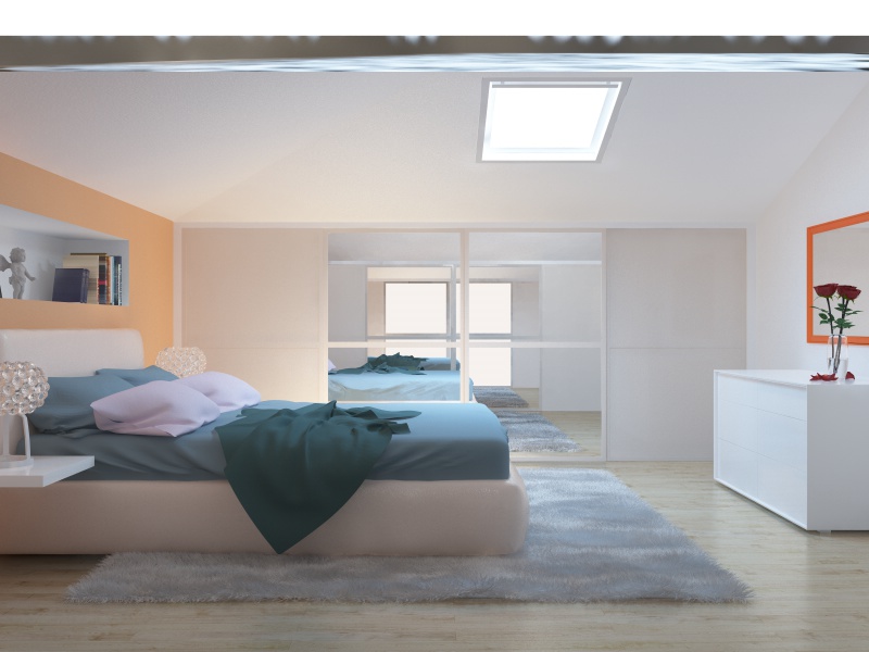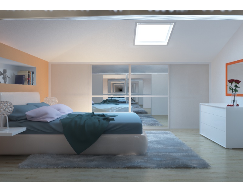L'unica cosa di cerco che so è che lo specchio ha la cornice arancio. Per il resto pura immaginazione. Comunque vorrei creare un ambiente solare più che romantico.