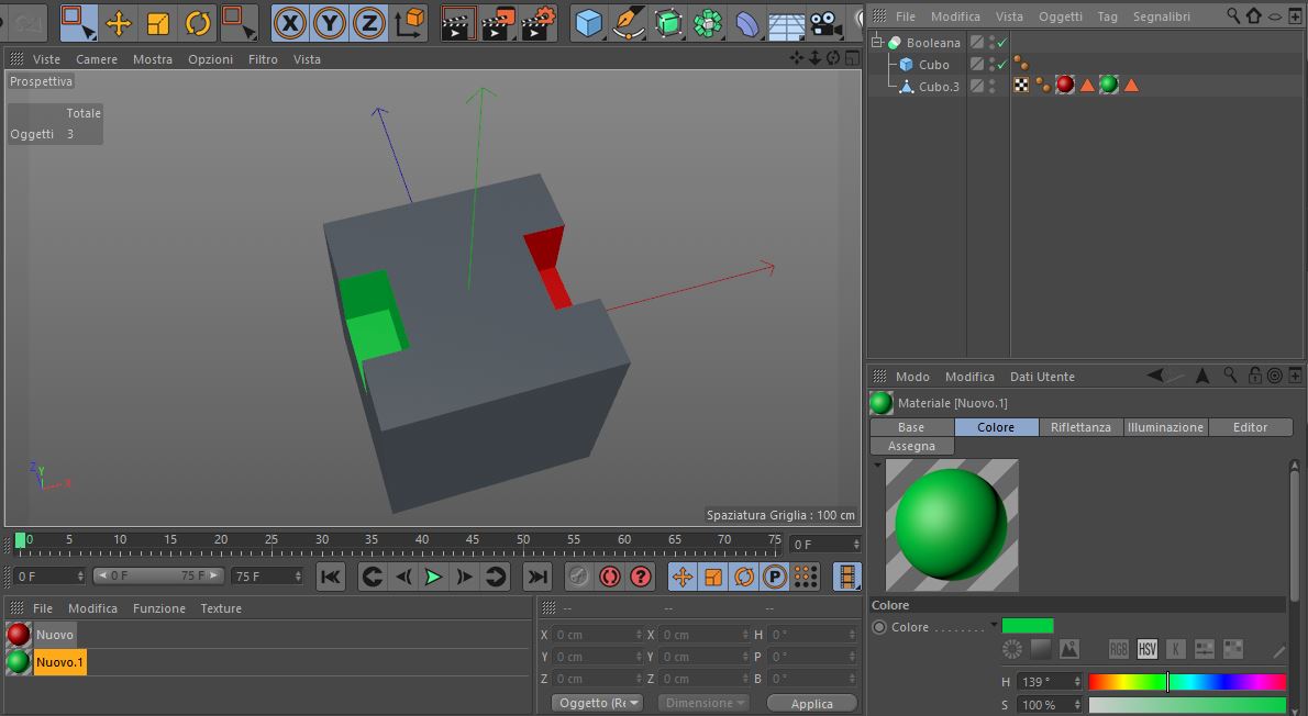 Ho assoluto bisogno di riuscire a fare in modo che la superficie creata dal taglio della Booleana risulti dello stesso materiale dell'oggetto tagliato, per esempio, se il cubo che uso per tagliare interseca due oggetti, uno rosso e uno verde, il taglio dell'oggetto rosso risulterà rosso e quello dell'oggetto verde risulterà verde.