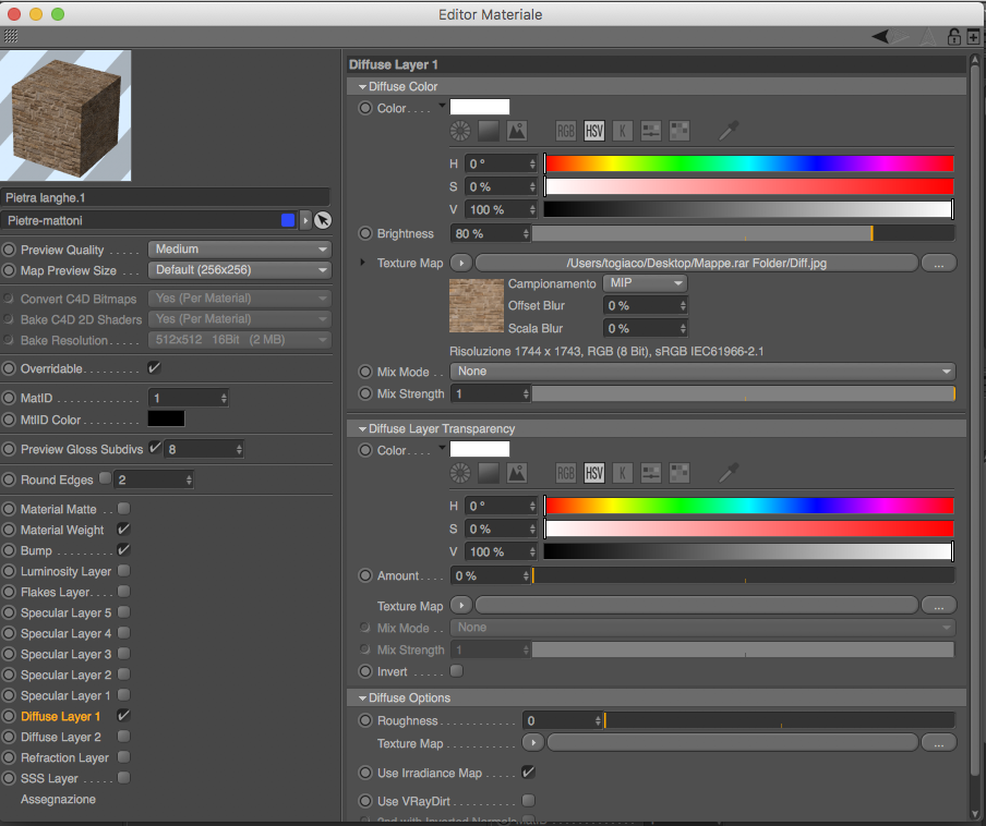 Dovresti mettere anche una leggera riflessione per migliorare il materaile perchè in natura ogni materiale poco o tanto riflette.
