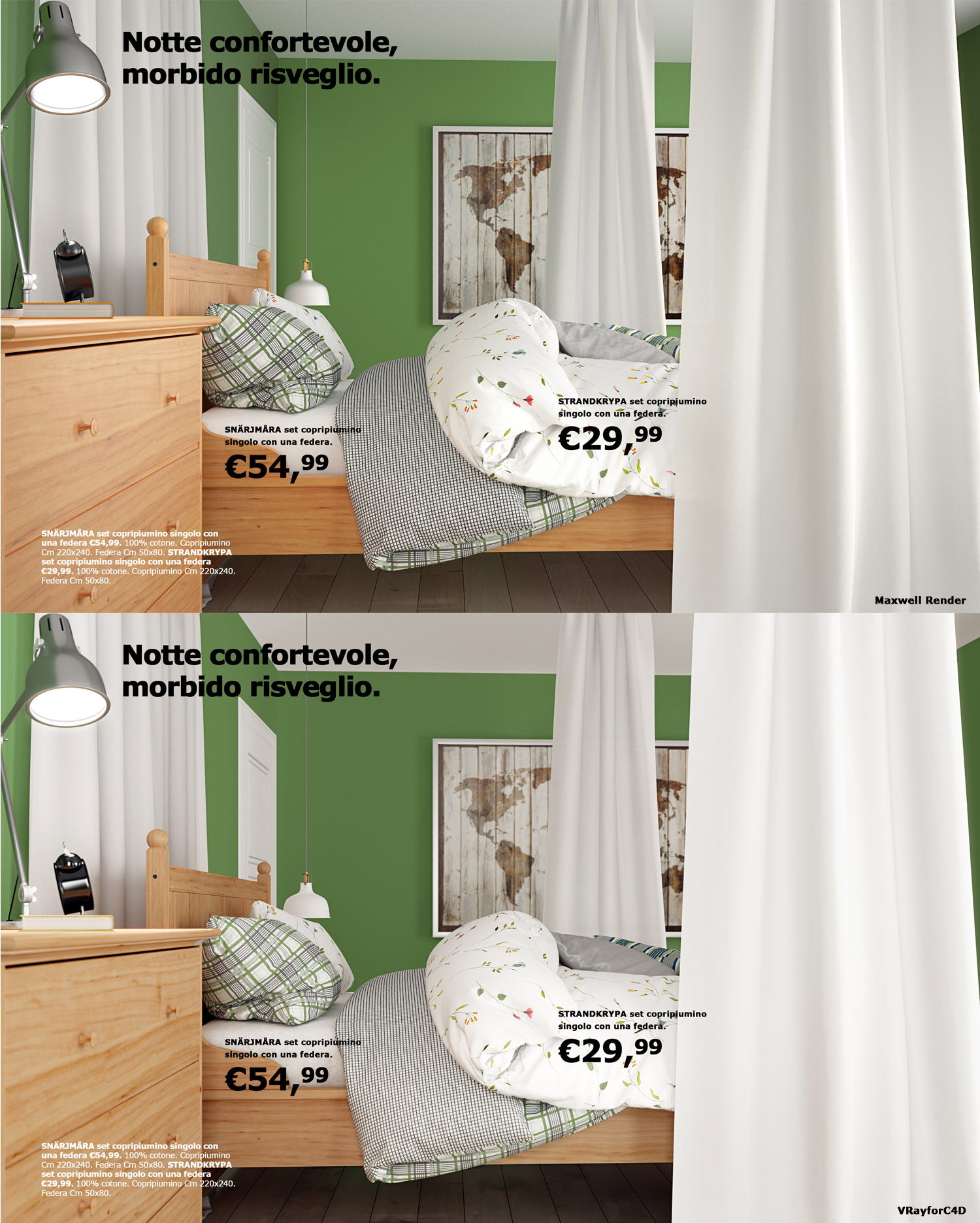 Ikea Scene: VRayforc4d vs Maxwell Render
