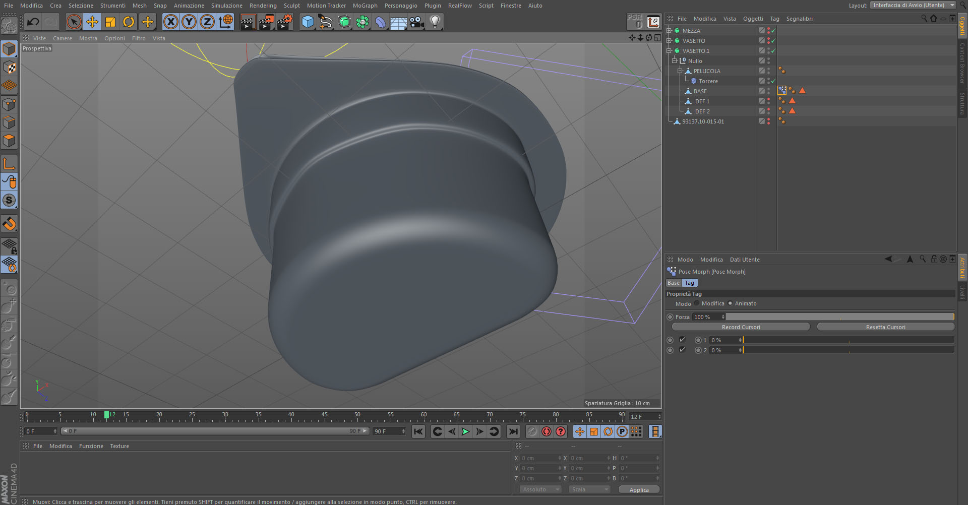 Ho scartato pure i deformatori, poichè ho deciso di utilizzare il morph per miscelare il prodotto iniziale con quello deformato.