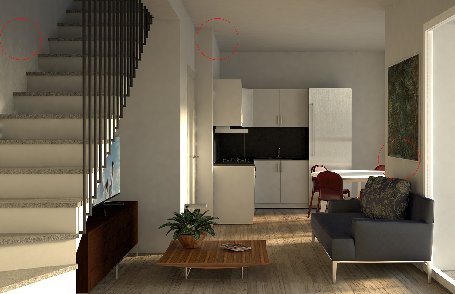 La seconda tecnologia, ovvero la IR, Irradiance map, e' una tecnologia 3D, molto 3D, ma un po più sporca, che provoca macchie, rapporto prestazioni e risultato ottimo, e' quella che parte dopo e usa i quadrati dei processori e la vedi andare in giro prima del rendering, ora fa mono passate, quindi ne fa sempre una, leggermente più lenta, ma sempre apprezzabile. Unico neo, provoca delle macchie, esattamente quegli sbaffi di ombre e luci che si vedono in punti critici, può' scomparire se alzi il preset, o cercando appunto dentro i suoi parametri quello che si chiama Hemispheric Sub, ma in teoria alzando il preset dovrebbe andare via, ma non e' detto perché' nella 3.4 non si alza tanto quel parametro aumentando il presettaggio.
