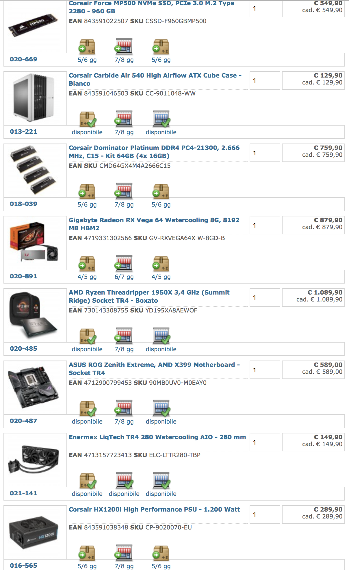 Mettendo insieme un AMD 1950x, ottimo in termini di prestazioni e costo vien fuori 4450,00 euro a questo va aggiunto 100 euro di licenza windows e 150 euro di tastiera e mouse... oltre al monitor se se ne vuole comprare uno... diciamo 1000/1500 euro di monitor.