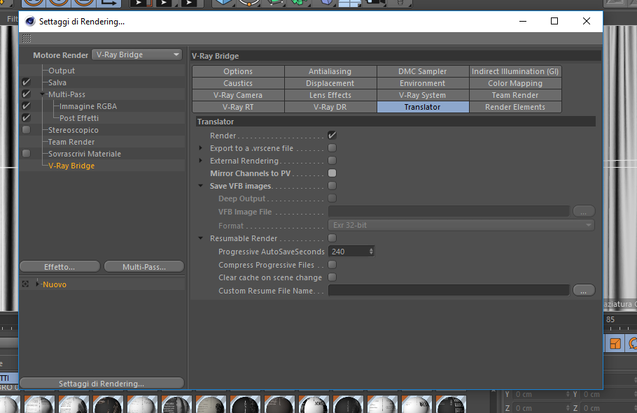 Probabilmente provo a fare così: impostare il mirroring che mi hai suggerito, cosi almeno con la coda mi si salva il render dal visualizzatore di Cinema 4D, poi attivo anche il mirroring dal pannello translator, che mi crea una copia dei canali del VFB all'interno del visualizzatore di Cinema. (Senza salvarli)