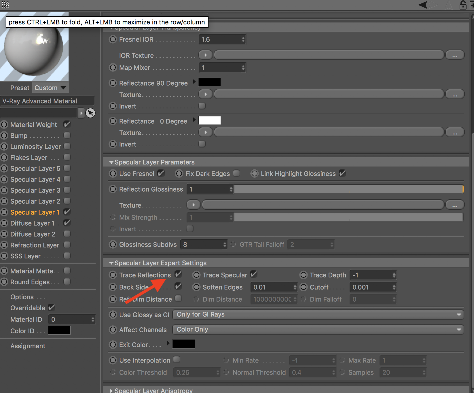 Se noti lo standard material ha il trace delle riflessioni dietro disattivo, rispetto all'advanced material invece in cui lo specular ha invece attivo il trace back reflactions.
