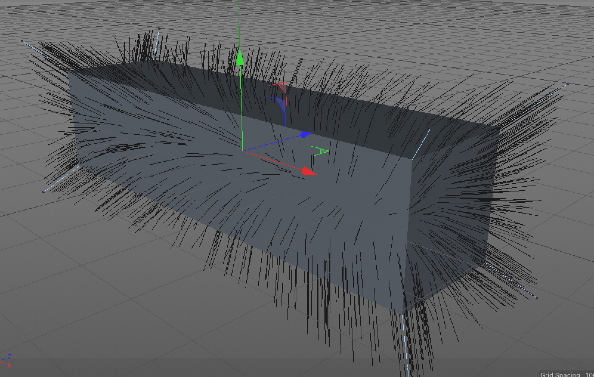 Nella seconda ipotesi, nel pannello guide, ho cambiato la zona di creazione e gli ho detto un altra cosa...al di la del risultato il problema qua e' meno evidente anche se ancora non ci siamo, perche' la guida centrale ha colliso correttamente e ha creato il mucchio di peli centrali, ma siccome ho pochissime guide il resto si e' interpolato alla guida ciondolona, e quindi si sono compenetrati.