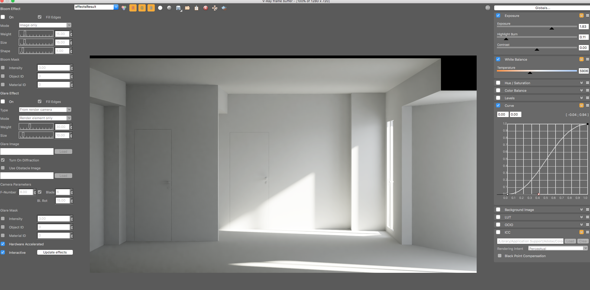 -giacché hai attivato il VFB usalo.. per ottenere il giusto contrasto e luminosità spesso basta solo un minimo di tone mapping, vedi allegato(usato solo un physical sun Hosek con ombre un po' più morbide)