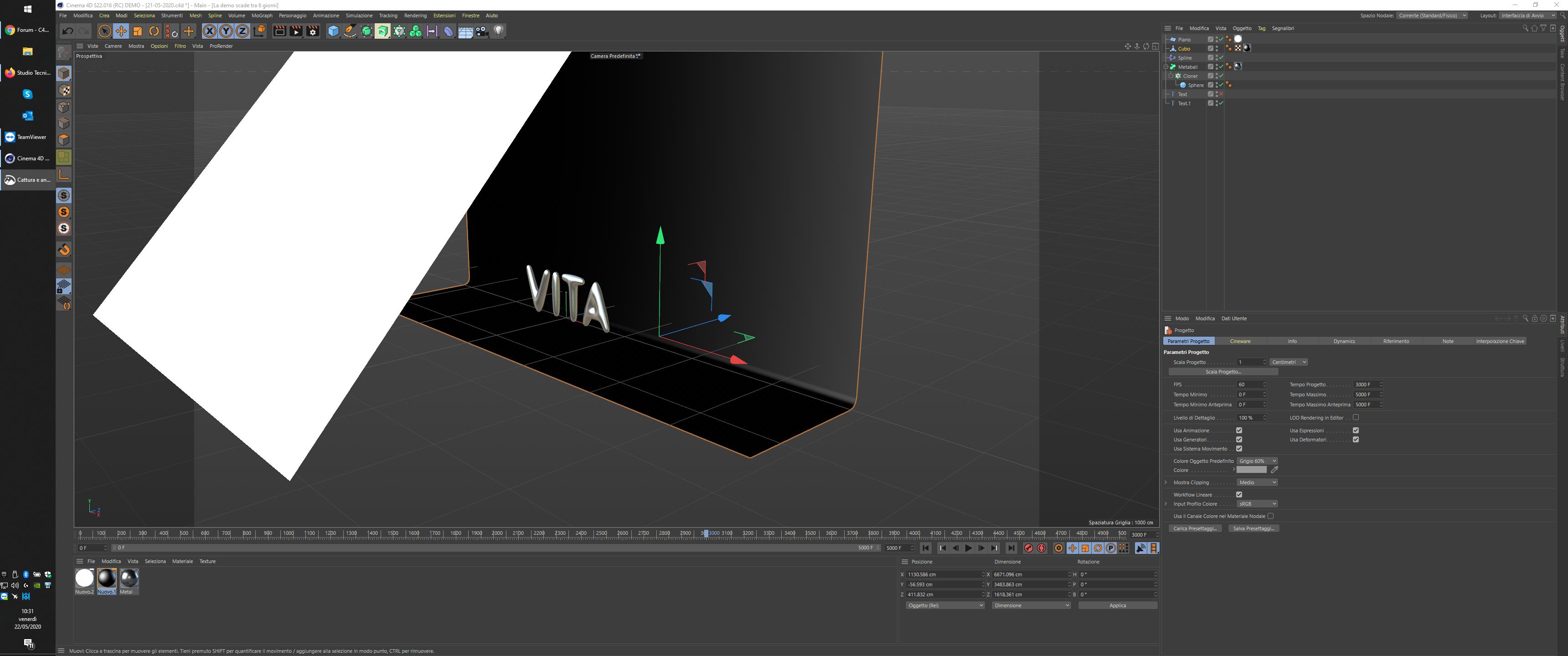 (Vorrei che la scritta visibile nell'editor fosse la stessa una volta renderizzata, compresa di luci, riflessi, materiali ecc e che lo sfondo fosse nero).