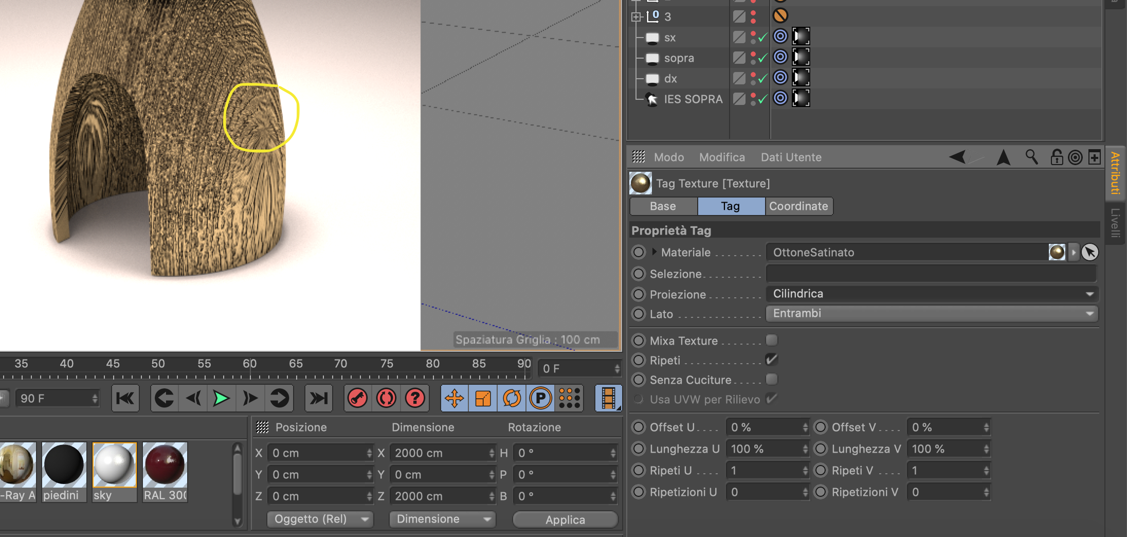 Sapete come posso risolvere questo problema? in sostanza vorrei che la texture non si deformasse e non avesse diversità di scala tra "sopra" e "sotto", così facendo posso aggiustarla di conseguenza ma se non sistemo questo "salto" di texture non posso proseguire oltre.